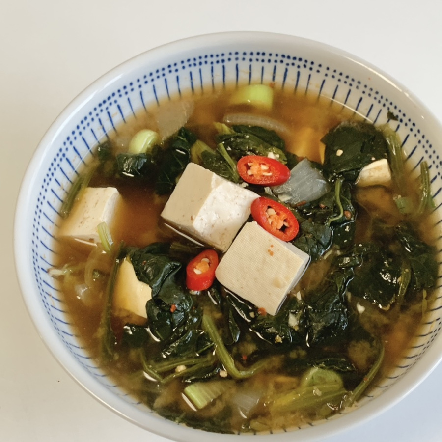 - 저염 된장 + 미역/다시마 육수로 가볍게 끓인 미역국 또는 두부 된장국