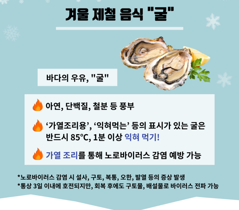 굴, 무, 배추, 귤, 겨울 생선, 고구마 등은 영양소가 풍부해 면역력 강화, 혈압 조절, 피로 회복, 피부 건강 등에 도움이 돼요.