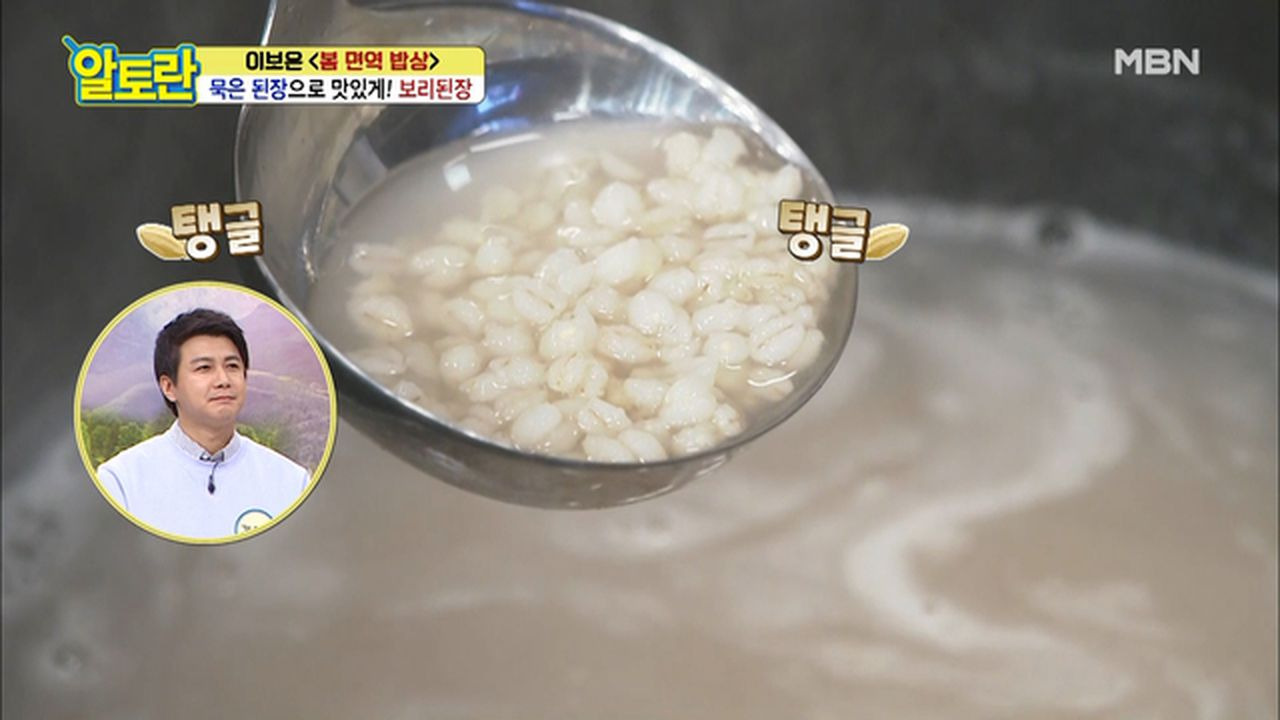 - 통보리 1컵을 물이나 채수에 넣고 압력밥솥이나 솥에서 부드럽게 삶기