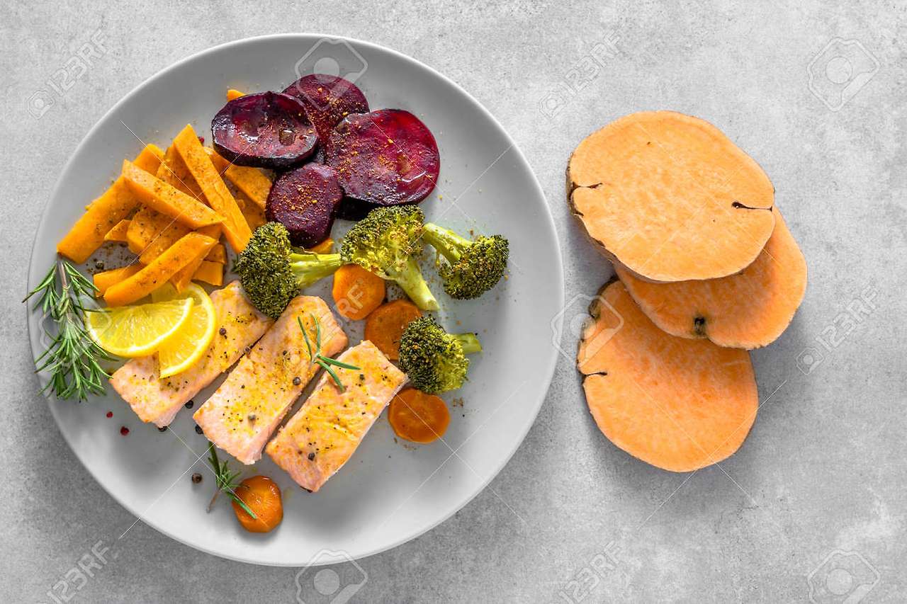 3. 연어 샐러드 + 구운 채소 + 현미/통곡물밥 — 균형 잡힌 면역 밥상